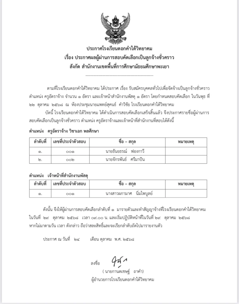 กลุ่มบริหารงานบุคคล ประกาศรายชื่อผู้มีสิทธิ์เข้ารับการคัดเลือกเพื่อเป็นลูกจ้างชั่วคราวครูแนะแนว4 พฤษภาคม 20254 พฤษภาคม 2025